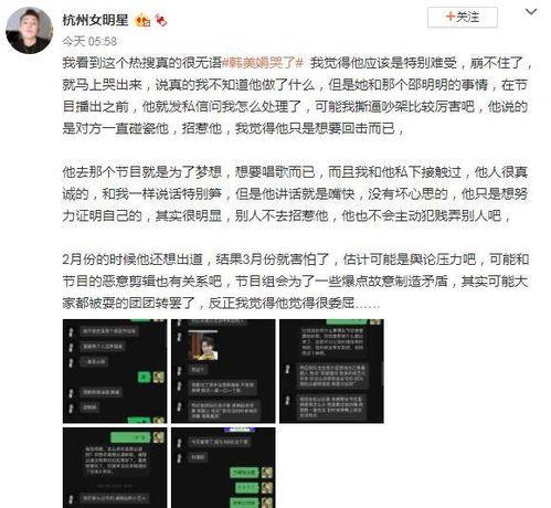 不过,也有网友表示理解。他们认为,韩美娟作为一个经历过选秀节目的选手,有权利分享自己的经历。而且,她的爆料也让更多人了解了明星背后的付出。